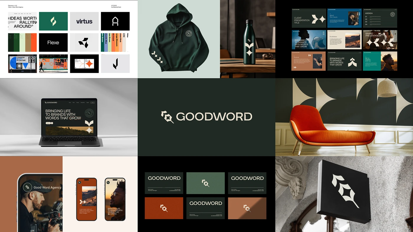 Crafted for Good Word Agency, this brand identity began with a deep dive into their ethos: purposeful storytelling, strategic clarity, and creative collaboration. Early conversations pointed to the quill as a powerful symbol, representing not only the craft of writing but also the guidance of a North Star. That insight became the foundation for a visual language centered around direction, movement, and precision.